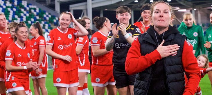 The 40-year-old midfielder formally announced her retirement in the aftermath of the Reds’ Irish Cup Final victory over Linfield Women on Saturday evening and was the recipient of the NI Football League’s inaugural Special Recognition accolade at last night’s Women’s Football Awards, where she also claimed the Goal of the Year prize for her stunning strike against the Blues on the opening night of the Premiership campaign.