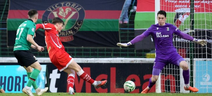 Glentoran utilised a similar route for James Singleton’s equaliser and, from then on, it was anyone’s game, with the hosts’ momentum making them favourites to claim all three points.