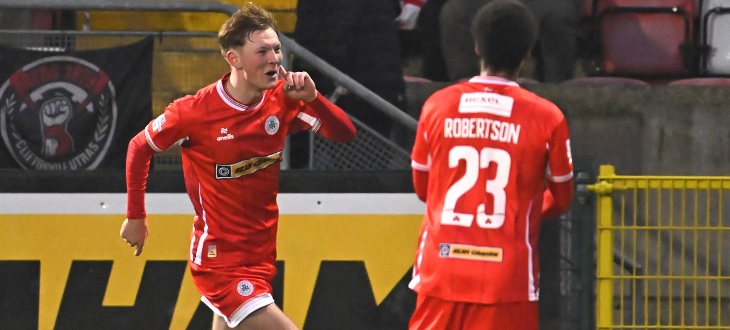 Ahead through Conor Falls’ well taken early opener, the Reds were made to work hard before doubling their advantage when Healy found the top corner with the outside of his boot.