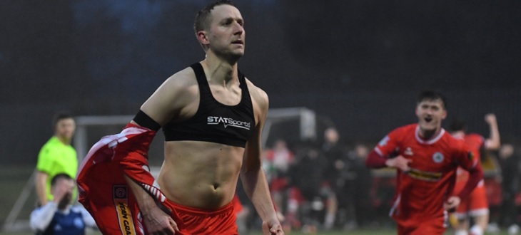 Jonny Addis thundered an injury-time thunderbolt into the top corner to earn 10-man Cliftonville a dramatic Irish Cup sixth round victory over Glenavon this afternoon.