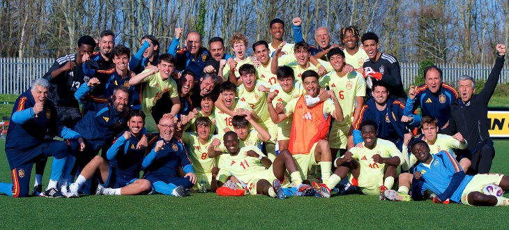 The early lead Caelan-Kole Cadamarteri gave Scotland was swiftly cancelled out by McGarry, only for the visitors to claim a winner through Luke Douglas five minutes from time – but the result wasn’t enough to book the Scots’ place in this summer’s Finals, which was claimed by Spain (below), who completed their schedule with a goalless draw against Turkiye at Solitude.